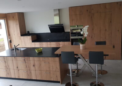 Chez Matile Menuiserie, chaque projet est une pièce unique, pensée et façonnée sur mesure selon vos envies et le caractère du bois. Tout ce que nous posons, nous le fabriquons dans notre atelier, où savoir-faire artisanal et équipements modernes se complètent pour garantir précision et qualité. Nous privilégions le bois suisse, et autant que possible issu de la région, afin de créer des réalisations durables, authentiques et respectueuses de nos valeurs.